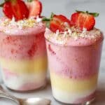 - Add Toppings and Serve: Top the layered smoothie with fresh coconut yogurt and a sprinkling of shredded coconut for a tropical finish. Serve immediately and enjoy this refreshing, nutrient-packed smoothie.