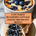 These Baked Blueberry Cottage Cheese Bowls are a nutritious and delicious breakfast option combining creamy cottage cheese, wholesome oats, ripe banana, and sweet blueberries. Baked until golden and custardy, they provide a perfect balance of protein, fiber, and natural sweetness for a satisfying morning meal.