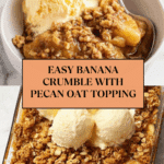Keywords: Banana crumble, banana dessert, baked fruit dessert, oat crumble, pecan topping, comfort food, easy dessert