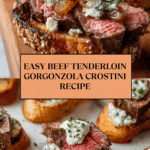 Beef Tenderloin Gorgonzola Crostini is an elegant appetizer perfect for special occasions or casual gatherings. The rich, tender beef pairs beautifully with creamy Gorgonzola and a touch of balsamic vinegar on crunchy toasted baguette slices.