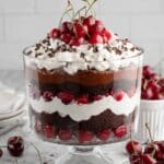 Keywords: Black Forest Trifle, Christmas dessert, layered trifle, chocolate cake dessert, cherry pudding trifle, holiday dessert
