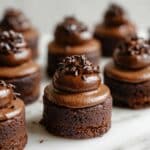 These Brownie Petit Fours are decadent bite-sized treats featuring rich, fudgy brownies topped with a smooth semisweet chocolate ganache and a sprinkle of fleur de sel for the perfect balance of sweet and salty. Perfect for parties or elegant desserts, these petit fours combine the deep chocolate flavor of classic brownies with an indulgent glossy ganache coating.