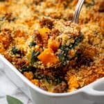 This Butternut Squash Casserole combines savory Italian sausage, hearty kale, and tender butternut squash for a comforting, flavorful dish. Topped with a crispy parmesan and sage breadcrumb crust, it’s perfect for a cozy family meal or holiday dinner.