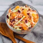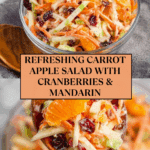 A refreshing and colorful Carrot Apple Salad featuring a mix of sweet and tart apples, crunchy matchstick carrots, dried cranberries, and mandarin segments all tossed in a creamy vanilla yogurt and mayo dressing. Perfect as a healthy side dish or light snack.