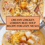 This Chicken Cordon Bleu Soup is a creamy, comforting dish inspired by the classic chicken cordon bleu flavors. It combines tender cooked chicken, ham, and a creamy broth enriched with cream cheese and Dijon mustard, finished with shredded Swiss cheese and crunchy croutons for a delightful meal perfect for any day.