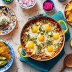 Keywords: Chilaquiles, Breakfast Casserole, Mexican Breakfast, Enchilada Sauce, Tortilla Chips, Monterey Jack Cheese, Cheddar Cheese, Easy Breakfast, Brunch Recipe