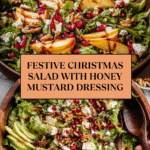 This Christmas Salad with Honey Mustard Dressing is a festive and vibrant dish perfect for holiday gatherings. Combining fresh greens, tart fruits, crunchy nuts, and a tangy-sweet dressing, it offers a delightful balance of flavors and textures.