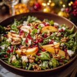 This vibrant Christmas Salad features baby spinach or mixed greens combined with fresh pomegranate seeds, cranberries, crisp apple slices, and candied nuts, all tossed in a tangy and sweet honey mustard dressing. It’s a refreshing, colorful side salad perfect for holiday gatherings or any festive occasion.