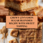 Keywords: cinnamon sugar blondies, blondie recipe, cinnamon blondies, easy dessert, baked blondies, cinnamon sugar topping