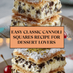 Classic Cannoli Squares capture the creamy, sweet filling of traditional cannoli in an easy-to-cut dessert form. With a crisp pie crust and a smooth ricotta and chocolate chip mixture, this treat is perfect for sharing at any gathering.