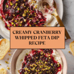 Keywords: whipped feta dip, cranberry dip, appetizer, Greek yogurt, festive dip, feta cheese, cranberry compote, easy holiday recipes