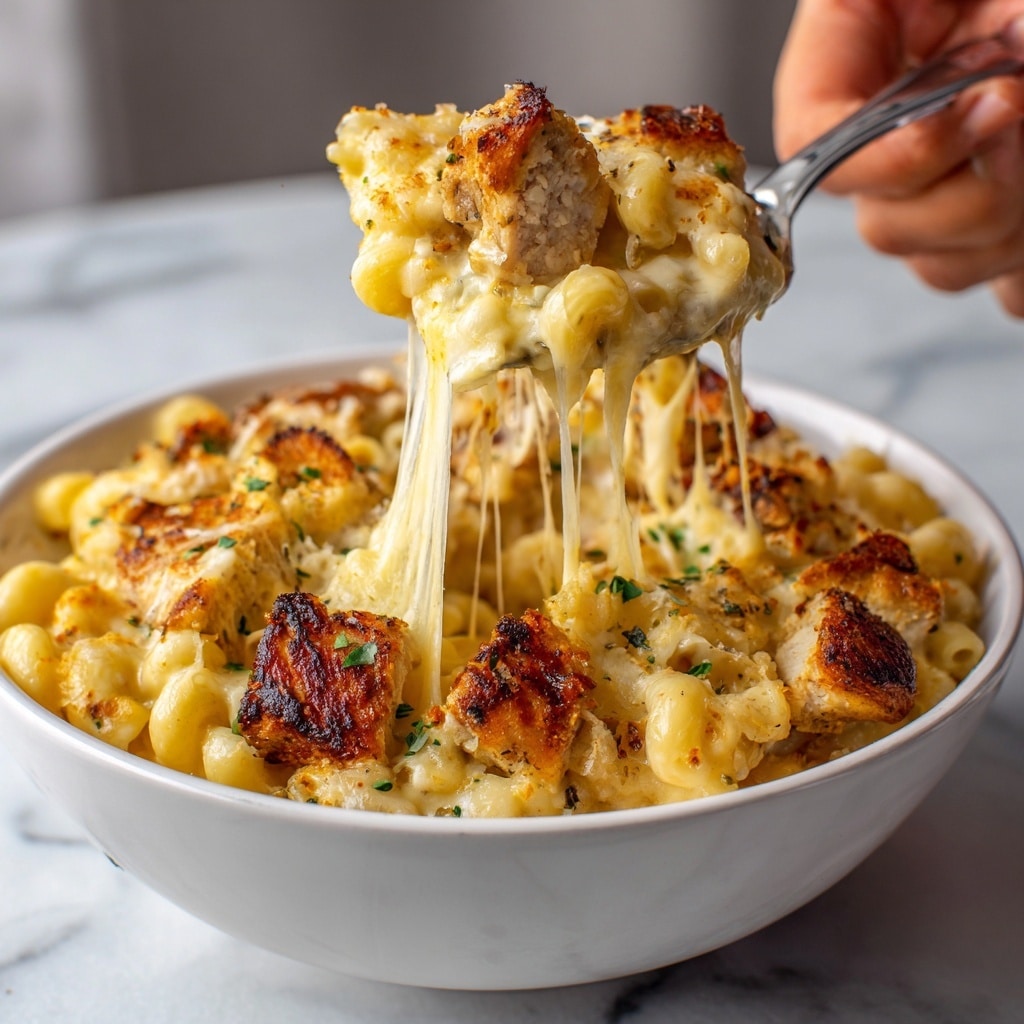 - Fold in Chicken: Gently fold the honey pepper chicken pieces into the cheesy macaroni mixture until evenly distributed.