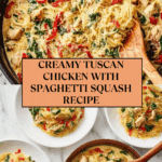 Keywords: Tuscan chicken, spaghetti squash, creamy chicken recipe, low carb dinner, Italian chicken dish, healthy chicken recipe