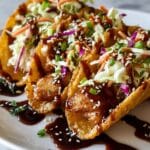 These Crispy Chicken Wonton Tacos are a delightful fusion dish combining tender teriyaki-marinated chicken, crunchy coleslaw, and crispy fried wontons. Perfect for a quick appetizer or a fun meal, they offer bold Asian-inspired flavors with a satisfying crunch.