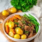 • If you prefer a thicker sauce, remove the roast and veggies at the end and simmer the cooking liquid on the stove until reduced.