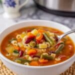 Keywords: minestrone soup, crockpot soup, slow cooker minestrone, Italian soup, vegetable soup, easy broccoli soup, healthy soup recipes