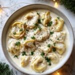 This Crockpot Tortellini Alfredo is a creamy, comforting pasta dish made effortlessly in a slow cooker. Tender cheese-filled tortellini is cooked in a rich Alfredo sauce made from heavy cream and Parmesan cheese, enhanced with garlic powder and finished with melty mozzarella cheese. Perfect for a hands-off weeknight meal, this recipe delivers classic Italian flavors with minimal prep and maximum convenience.