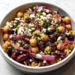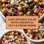 Divorce Salad is a vibrant and flavorful bean salad featuring chickpeas, black beans, tangy feta cheese, and a zesty red wine vinaigrette. This no-cook salad comes together easily and tastes best after chilling for a few hours, making it perfect for a refreshing side dish or a light meal.