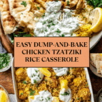 This Dump-and-Bake Chicken Tzatziki Rice is a simple, flavorful one-pan meal perfect for busy weeknights. Tender chicken, fragrant herbs, and zucchini cook together with rice, creating a comforting dish that pairs beautifully with creamy tzatziki and fresh lemon.