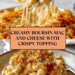 This Easy Boursin Mac and Cheese recipe combines creamy, flavorful cheeses with perfectly cooked pasta, topped with buttery toasted breadcrumbs for a comforting and delicious meal. Made with Boursin cheese and white cheddar, this mac and cheese is rich and velvety, and the browned breadcrumb topping adds a lovely crunch. Perfect for a cozy dinner or as a side dish.