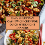 Keywords: sheet pan cashew chicken, easy chicken dinner, baked chicken recipe, healthy weeknight meals, cashew chicken with vegetables