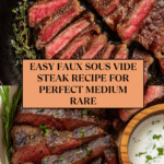 This Faux Sous Vide Hack Steak recipe allows home cooks to mimic the precision and tenderness of sous vide using a simple water bath technique combined with a perfect cast-iron skillet sear. Featuring rib-eye or strip steaks seasoned with salt, pepper, and optional herbs, the method involves temperature-controlled water immersion and a final butter-basted sear to achieve a juicy, medium-rare steak with a beautifully caramelized crust.