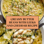 This flavorful butter beans with leeks recipe combines tender cannellini beans with aromatic leeks, garlic, and fresh herbs, enriched with melted cheddar and vegetarian pecorino cheeses. Finished with lemon zest and parsley, this comforting dish is perfect for a hearty lunch or dinner served alongside crispy bread.