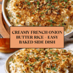 Keywords: French Onion Butter Rice, baked rice side dish, flavored rice, easy side recipes, French onion soup rice