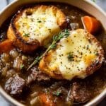 This French Onion Short Rib Soup with Gruyère Toast is a hearty and flavorful twist on the classic French onion soup. Tender, fall-apart beef short ribs simmered with caramelized onions and fragrant herbs create a rich broth, topped with crispy baguette slices loaded with melted Gruyère cheese for a comforting and indulgent meal perfect for chilly days.