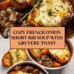 French Onion Short Rib Soup with Gruyère Toast is a rich and comforting dish that combines tender, slow-cooked beef with deeply caramelized onions and melted cheese-topped bread. This elegant soup is perfect for cozy dinners and special occasions alike.
