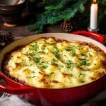 - Assemble and Bake: Transfer the filling to a shallow casserole dish or retain in the braiser if ovenproof. Evenly spoon the root vegetable mash over the filling. Bake in the preheated oven for 15 to 20 minutes until the filling is bubbling and the mash topping is lightly browned.