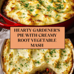 Gardener’s Pie with Root Vegetable Mash is a comforting vegetarian dish packed with hearty vegetables and creamy mashed roots. This flavorful pie combines a savory lentil and vegetable filling topped with a smooth blend of potatoes and rutabaga. Perfect for a cozy dinner any time of year.