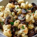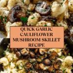 Keywords: Garlic Cauliflower, Mushroom Skillet, Vegetarian Side Dish, Easy Sautéed Vegetables, Healthy Cauliflower Recipe