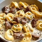 PrintGarlic Steak Tortellini in Creamy House Sauce Recipe