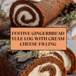 Keywords: Gingerbread Yule Log, Holiday Dessert, Christmas Cake, Cream Cheese Filling, Chocolate Ganache, Festive Cake