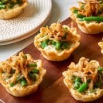 These Green Bean Casserole Cups are a fun and easy twist on the classic holiday side dish. Perfectly portioned and packed with creamy green bean filling, melted cheddar, and crispy fried onions, they make a delicious appetizer or side for any occasion.