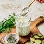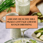 Keywords: healthy ranch dressing, dill pickle ranch, cottage cheese dressing, low fat ranch, creamy ranch dressing, homemade ranch seasoning, pickle juice dressing