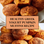 Delicious and healthy Greek Yogurt Pumpkin Muffins that combine the natural sweetness of pumpkin with the protein boost of Greek yogurt. These moist muffins are spiced perfectly with cinnamon, nutmeg, and cloves, making them a perfect fall treat or breakfast option.