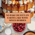Heaven on Earth Cake is a dreamy no-bake dessert that combines fluffy angel food cake with creamy pudding, fresh berries, and a luscious whipped topping. It’s easy to assemble and perfect for warm days or when you want a light but indulgent treat.