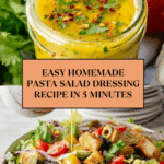 Keywords: pasta salad dressing, homemade dressing, vinaigrette, olive oil dressing, easy salad dressing, no-cook dressing, Italian herbs, tangy dressing, simple dressing