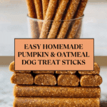 These Homemade Pumpkin & Oatmeal Dog Snack Sticks are a healthy, easy-to-make treat for your furry friend. Made with natural ingredients like pure pumpkin puree, oat flour, and peanut butter, these snacks are free from harmful additives and perfect for rewarding your dog with a tasty, wholesome bite.