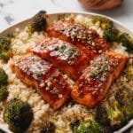 This Honey Glazed Salmon Bowl combines tender, oven-baked salmon fillets glazed with sweet honey, served over a bed of wholesome brown rice and topped with fresh, crunchy alfalfa sprouts. It’s a nutritious and flavorful meal perfect for a healthy lunch or dinner.