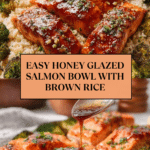 - Assemble the bowl: Spoon cooked brown rice into serving bowls. Place the warm honey glazed salmon fillets on top of the rice.