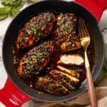 - Serve: Remove chicken from the oven, let cool slightly, then spoon remaining hot honey sauce over the breasts. Serve with preferred sides such as salad, pasta, or rice.