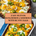 This Huevos Rancheros Casserole is a flavorful, layered Mexican-inspired breakfast dish featuring crispy corn tostadas, seasoned salsa, pinto beans, shredded Mexican cheese, and baked eggs with a perfect balance of runny yolks and set whites. Finished with fresh avocado and cilantro, it’s an easy, hearty casserole ideal for a festive brunch or comforting breakfast.