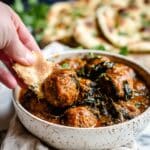 Keywords: Indian meatballs, curry meatballs, spiced pork meatballs, Indian curry, easy Indian dinner, stovetop curry, kale curry