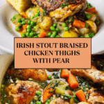 Irish Stout Braised Chicken Thighs is a comforting and flavorful dish that combines tender chicken with rich stout beer and hearty vegetables. This one-pot meal is perfect for cozy dinners and packs a delicious punch with tender pears and crispy bacon.