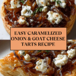 These Irresistible Caramelized Onion and Goat Cheese Tarts are a perfect blend of sweet, savory, and tangy flavors wrapped in flaky puff pastry. With just three easy steps, you can create an elegant appetizer or snack that boasts caramelized onions sweetened with a hint of balsamic and thyme, paired with creamy, tangy goat cheese, making it an irresistible treat for any occasion.