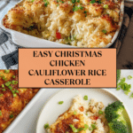 Keywords: Christmas casserole, chicken casserole, cauliflower rice dish, low carb casserole, holiday dinner, baked chicken casserole, healthy cauliflower recipe