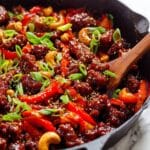 - Step 3: Using the same skillet, add sesame oil and sauté garlic, ginger, and dried red chilies for 1-2 minutes until fragrant.